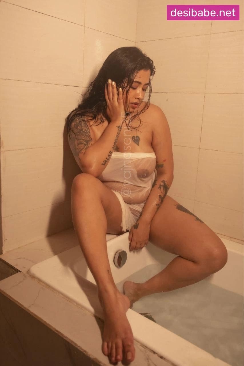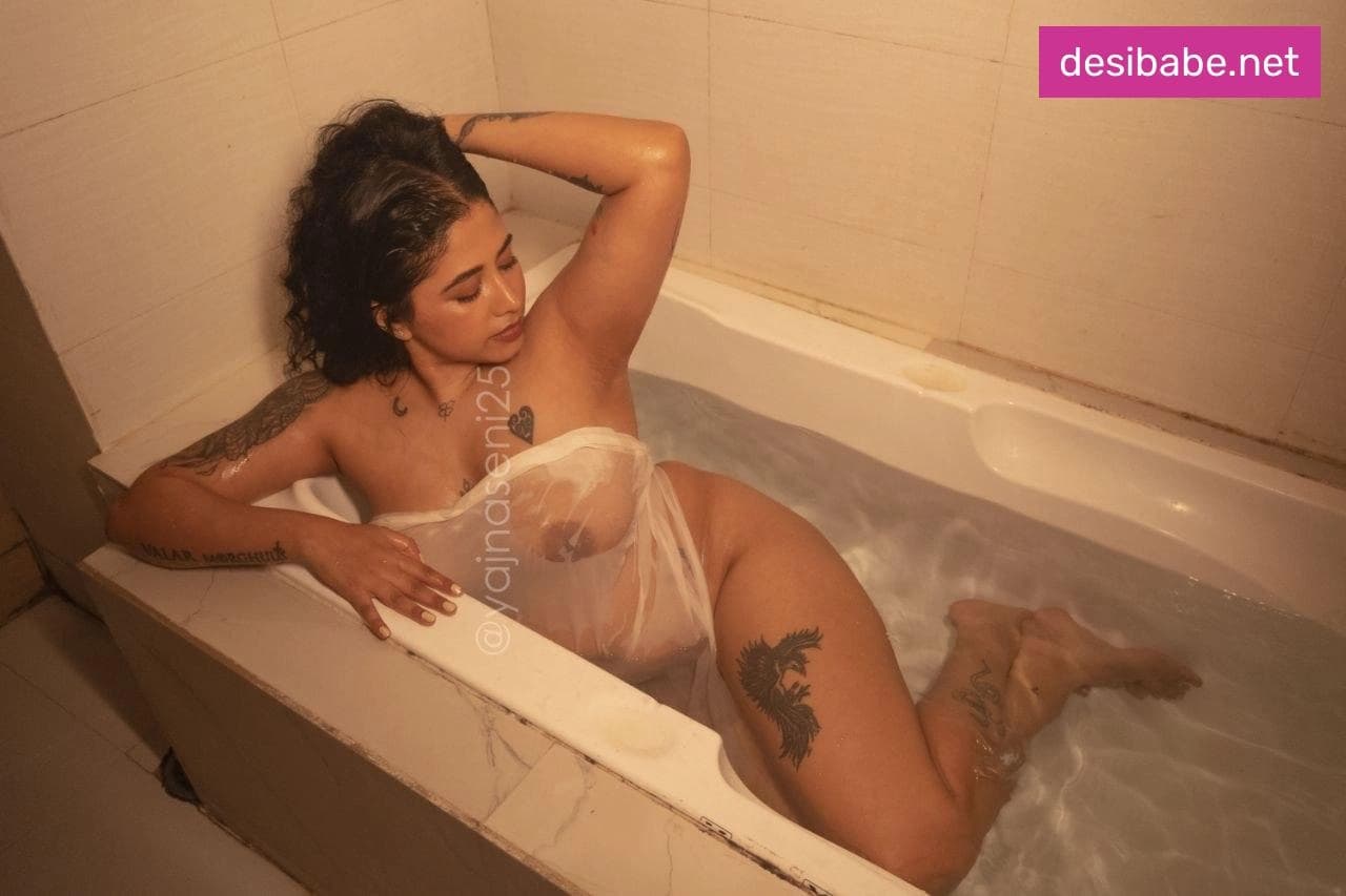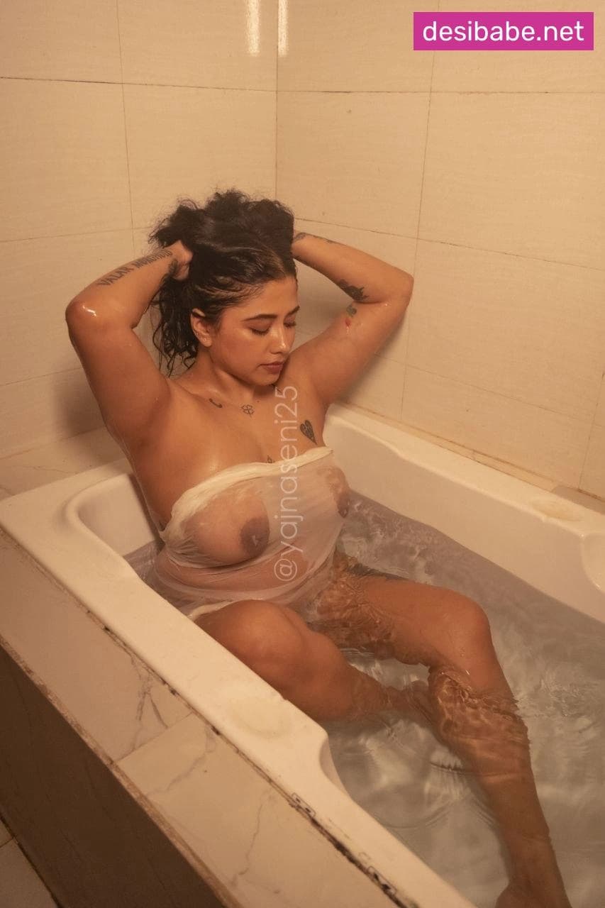 Yajna Seni Wet Bathtub Photoshoot Boobs Display Nude In See-Through