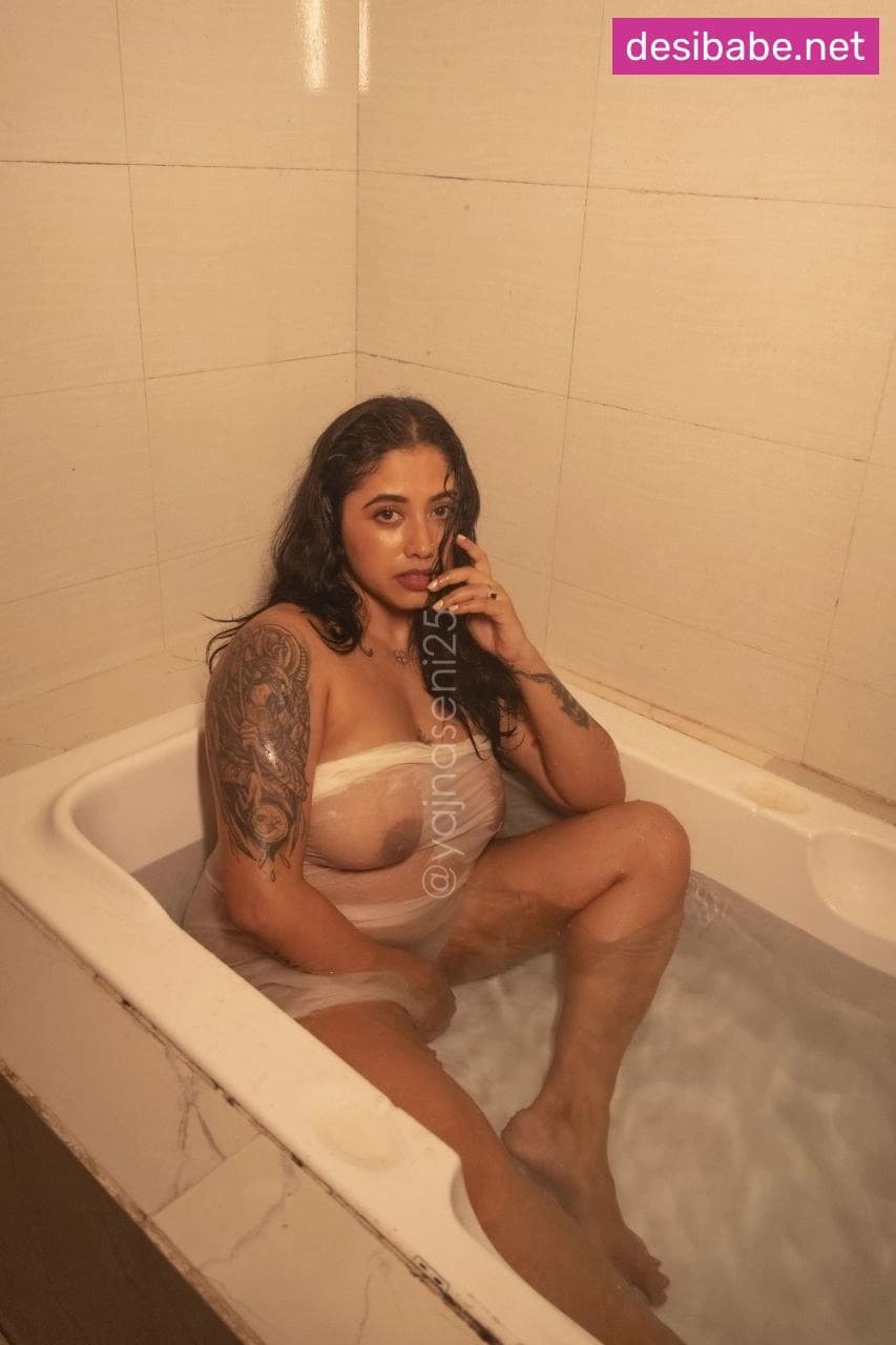 The famous model Yajna Seni is completely naked in this wet bathtub shoot, her big boobs on full display through the see-through water. She turns and arches her back, making her round ass glisten. The camera zooms in on her hard nipples as she splashes water over her perfect tits. She runs her hands down her stomach, teasing the camera. Watching her slick body and those juicy boobs bounce will make you rock hard.